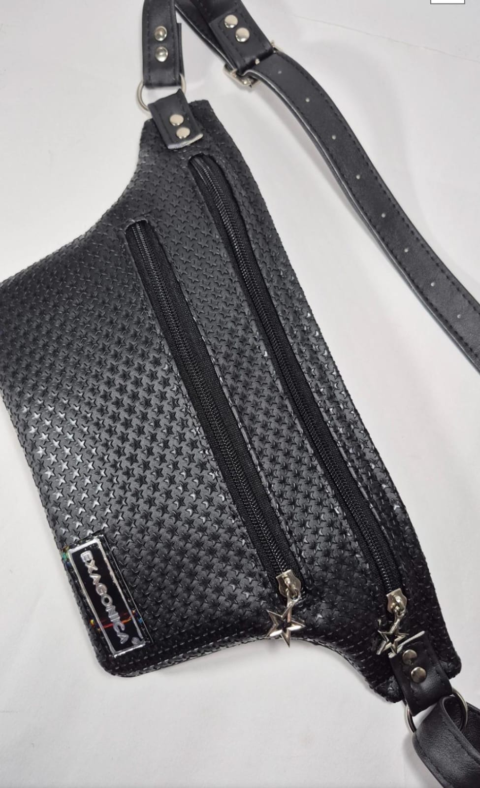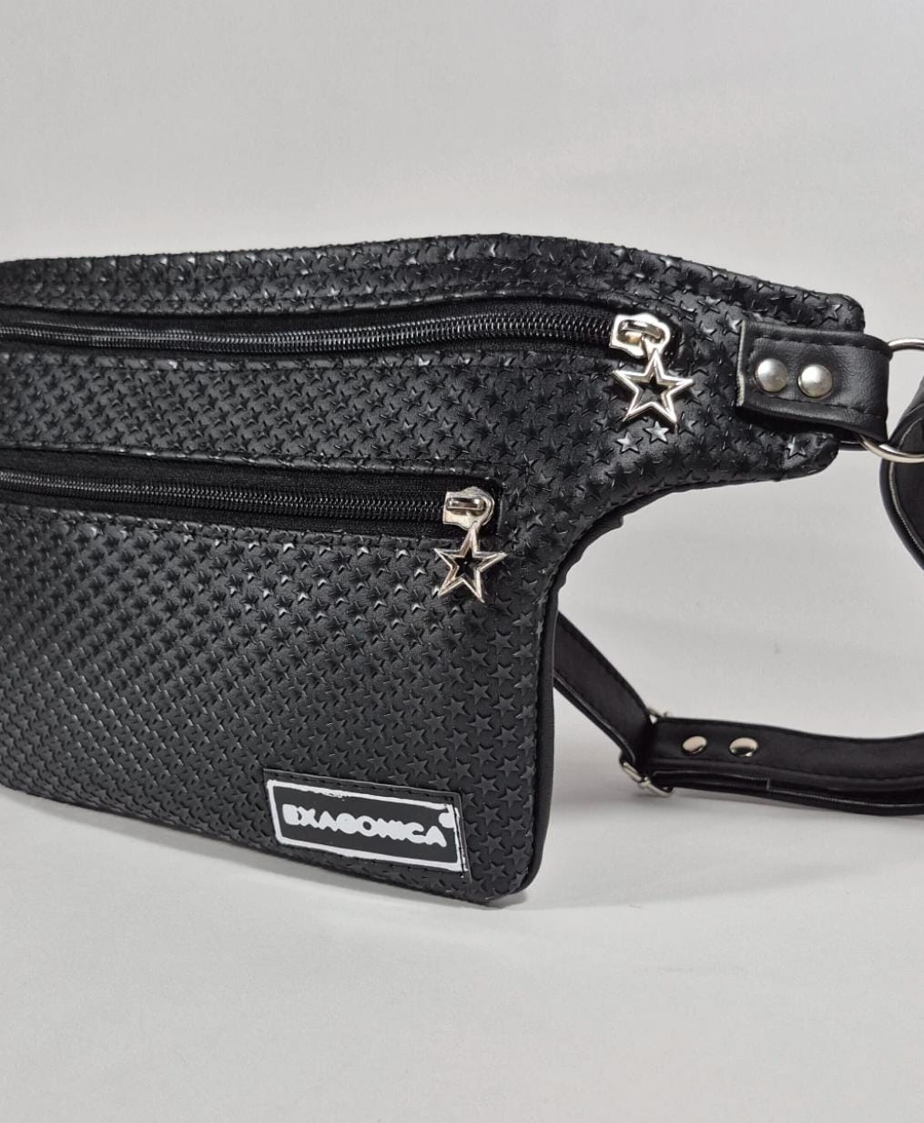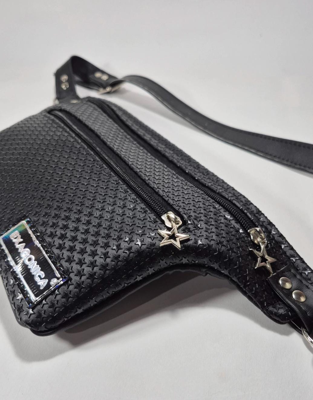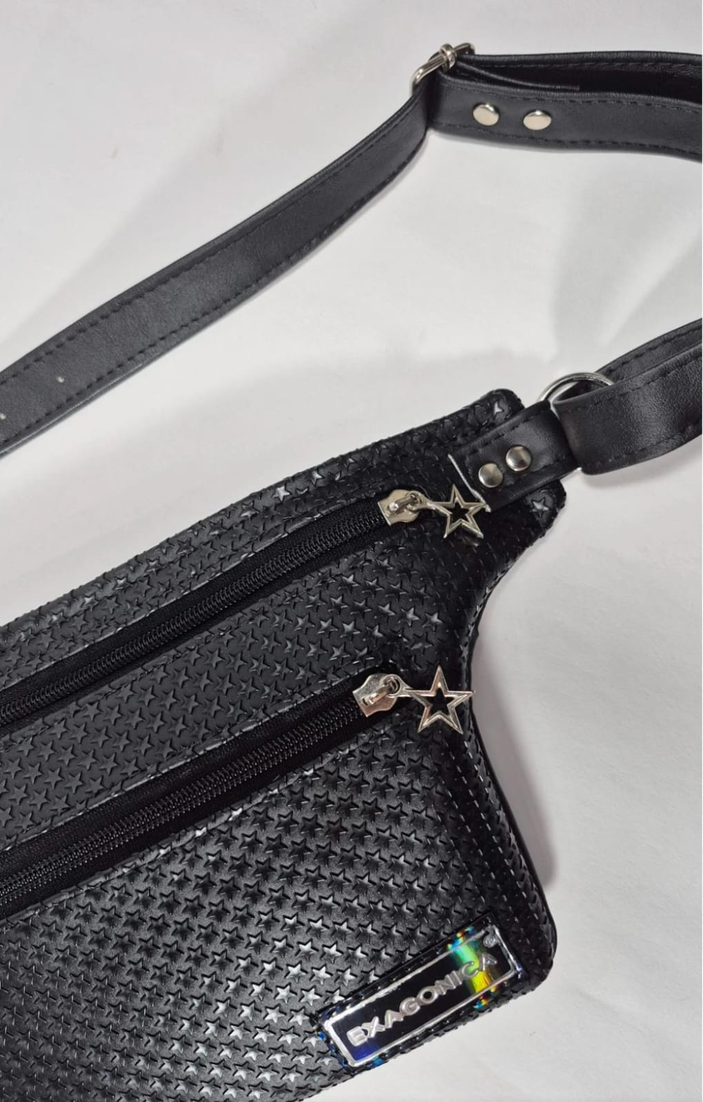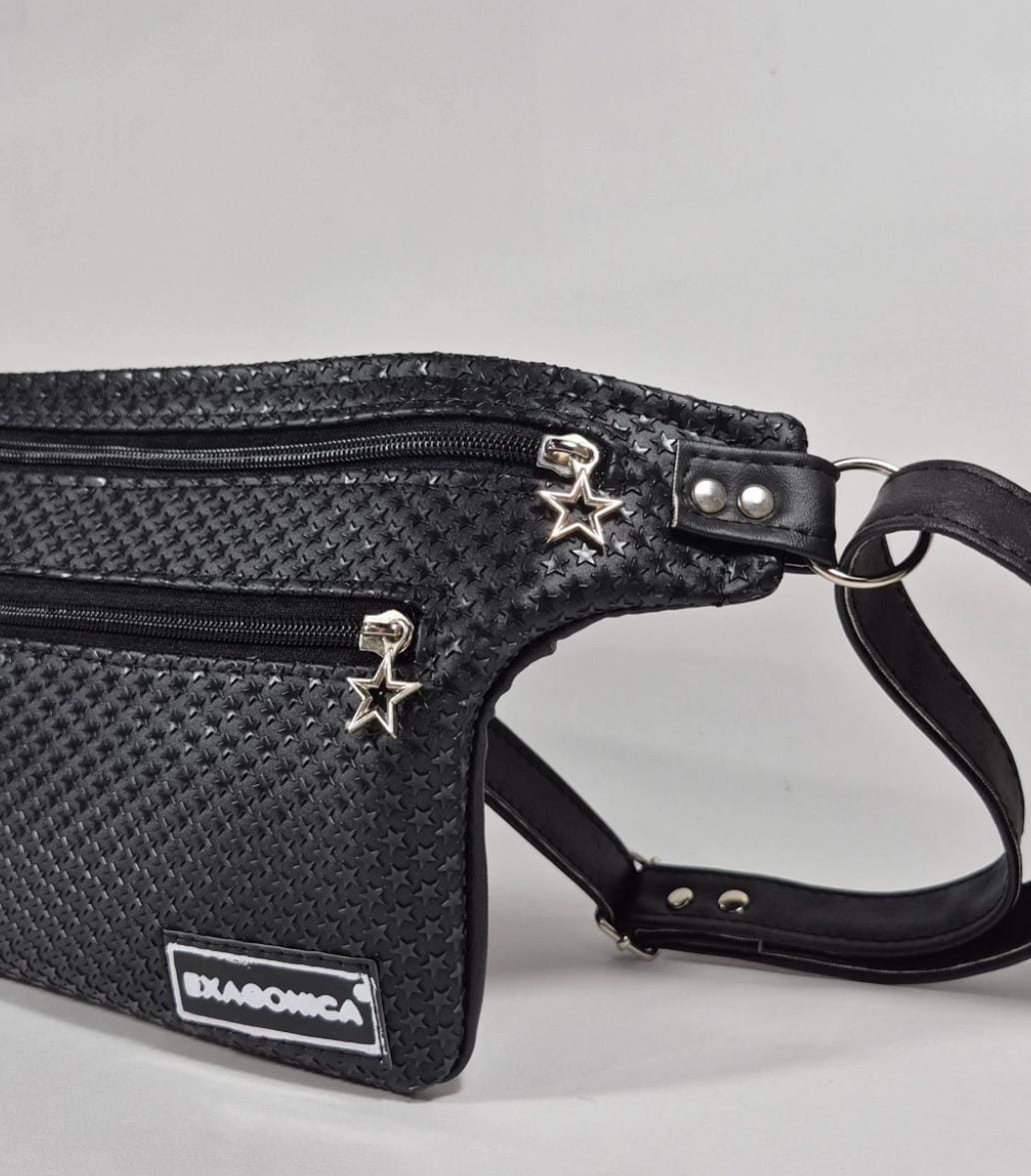 Correa de ecocuero regulable con hebilla y regulador para que puedas elegir el largo para usarla cruzada en el torso, en la cadera o tipo carterita.
